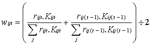 27.54 In those cases where the tax cannot be allocated exclusively to capital or labour it is allocated in proportion to labour and capital factor incomes. Aggregation of capital services within each industry Formation of capital services indexes for each industry 27.55 Rental prices are used to form the weights used to aggregate the estimates of productive capital stock of each asset type, j, for each of the corporate and household sectors within each industry, i, to form a Tornqvist index of industry capital services. Thus: