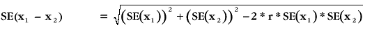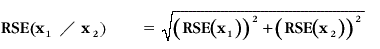 STANDARD ERRORS FOR BENCHMARK TOTALS As outlined in chapter 4, estimates derived from the survey were obtained using a complex regression estimation procedure which ensures that survey estimates conform to independently estimated distributions of the population, also called benchmark totals. The relative standard error of benchmark totals, and benchmark totals by quintile, should not be referenced from this publication. (All benchmark totals are footnoted "a" in table A1.1.) An indication of the quality of some household benchmark totals may be found in Household Estimates 1986, 1991-94 (Cat. no. 3229.0). Person benchmark totals are not subject to sampling error, but are subject to non-sampling error. The Australia-level relative standard errors of benchmark values are provided only as a means of calculating non-benchmark total estimates. For example, the average number of people aged 65 years and over in a household is a benchmark total, so its Australian RSE should not be referenced from this publication; its Australian RSE in table A1.1 should only be used to calculate the RSE of non-benchmark estimates, such as the average number of people aged 65 years and over living in a couple only household. CALCULATION OF STANDARD ERRORS FOR DERIVED STATISTICS Many figures of interest may be derived by taking sums, differences and ratios of the tabulated data. Approximate standard errors for these ‘derived estimates’ can be calculated using the formulae below in which x1 and x2 are estimates and SE(x1) and SE(x2) are the standard errors of x1 and x2. Exact standard errors for these ‘derived estimates’ have not been published, although they could be calculated upon request. Note: The approximate formulae are derived assuming the correlation between x1 and x2 is zero. Correlation, in this context, is a statistical estimate which measures the linear relationship between x1 and x2 and takes values in the range [-1,1]. The correlation will be exactly zero if the two estimates are based on independent subgroups of the sample (e.g. different states or income groups). Two estimates of the same subgroup will be positively correlated if large values of the items are likely to occur together (e.g. estimates of expenditure on transport are likely to be correlated with estimates of expenditure on purchase of vehicles because purchase of vehicles is a large part of the expenditure included in expenditure on transport). Converting between relative standard error (RSE) and standard error (SE) The relative standard error is the standard error expressed as a percentage of the estimate. Formulae for converting standard errors to relative standard errors and the relative standard errors to standard errors are: Returning to the expenditure on transport example, average expenditure on transport (x1) at the fourth income quintile level was $154.80 and the RSE was equal to 4.6%. Therefore, the standard error (SE(x1)) was equal to ($154.80 * 4.6) / 100 = $7.12. Calculating the standard error for summed estimates New items or categories of expenditure can be derived by combining existing ones. The approximate standard error of the estimate is: For example, if we wanted to create a new category of expenditure, say of expenditure on transport and personal care, then to calculate the standard error of the new category we would need to know the standard error of expenditure on both transport and personal care. At the Australia level, the estimate for expenditure on transport ($117.82) and personal care ($13.73) can be obtained from table 1 of the 1998-99 HES publication Summary of Results (Cat. no. 6530.0). Calculation of the standard error for the combined estimate of transport and personal care would be as follows: Note that if there was a non-zero correlation between x1 and x2 then the standard error for a sum would be: where r is the sample correlation coefficient. Thus, if the two estimates are positively correlated (i.e. r > 0) then the standard error will be underestimated; similarly if there is a negative correlation (i.e. r < 0) then the standard error will be overestimated. Calculating the standard error for the difference between estimates The standard error of the difference can be used to determine whether two estimates are significantly different, that is, whether the difference is unlikely to be due to sampling variability. If the difference between estimates is twice the standard error of the difference, then the estimates are said to be statistically different at the 95% confidence level. The approximate standard error of the difference between estimates is: As can be seen, the approximate standard error of the difference involves the same calculations as the standard error of the sum. This approximation is accurate provided that the two estimates have zero correlation. If correlation exists then we obtain the standard error formula of In this case a positive correlation will produce an overestimate of standard error whilst a negative correlation will produce an underestimate. Calculating the standard error of the ratio of estimates Two items can be compared by calculating the ratio of one to the other. For example, researchers may want to express expenditure on petrol (expenditure code 10010301) as a percentage of total expenditure on transport costs (the sum of all expenditure codes beginning with 10). The relative standard error of the percentage or proportion can be approximated using the formula: As can be seen, this formula is similar to that used for calculating sums and differences between estimates, except that relative standard errors are used in the formula in place of the standard errors.