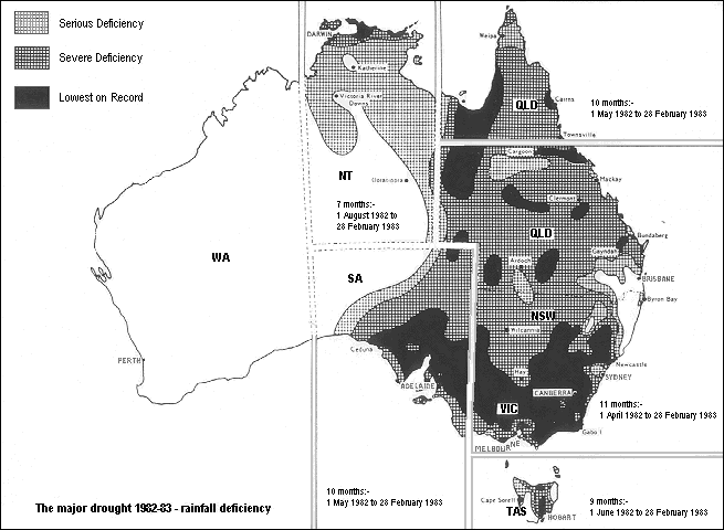 The 1982-83 drought was notably severe also, especially in south-eastern Australia. This drought was monitored closely and is discussed more fully below.