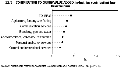 Tourism contributed 4.3% to total industry gross value added. This compares well with other industries (see graphs 22.2 and 22.3).