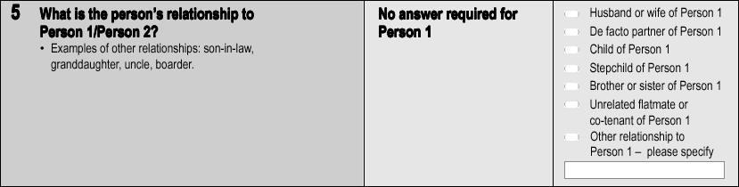 This is a key variable at the person level. It is used to determine familial and non-familial relationships between persons usually residing within the same household.