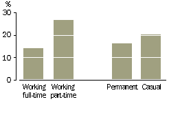 The change most commonly experienced by part-time employees was a change in hours (31% of part-time permanent employees and 23% of part-time casual employees). This included changes from full-time to part-time hours as well as variations to working hours for employees who were already part-time.