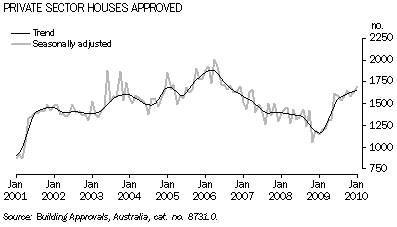 This link takes you to time series spreadsheets from Building Approvals, Australia, Jan 2010 (cat. no. 8731.0).
