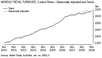 - In trend terms retail turnover increased marginally (0.1%) in November 2009. Retail trade has continued to steadily increase from January 2009. This is an increase of almost 4% during this period.
