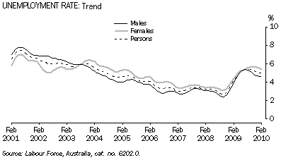 - Western Australia's unemployment was unchanged from January to February 2010, remaining at 5.0% in both trend and seasonally adjusted terms and below the national figure of 5.3%.