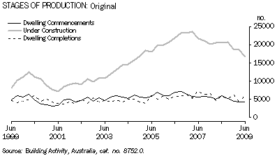 - In the June quarter 2009, there were 16,700 dwellings under construction, the lowest number since 2001. This represented a fall of more than 10% from the previous quarter and of 19% from the June quarter 2008.