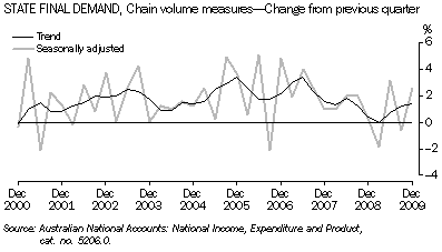 - State final demand (trend chain volume measures) in Western Australia increased for the third consecutive quarter in December 2009 (up 1.4%), matching domestic final demand growth at the national level.