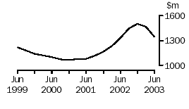 The trend estimate for inventories (in volume terms) has decreased throughout 2002-03 after five quarters of growth.