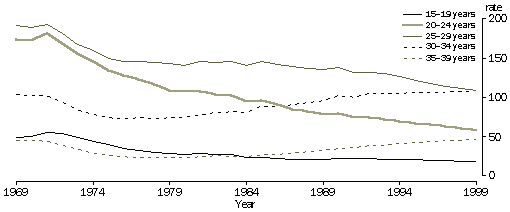 Source: Births, Australia, 1969, 1979, 1989 and 1999 (cat. no. 3301.0).
