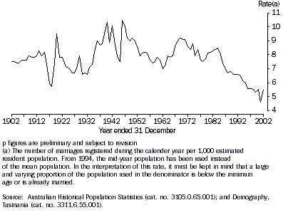 CRUDE MARRIAGE RATE, Tasmania - 1902-2002p