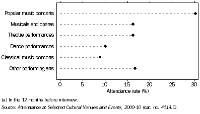 12.1 ATTENDANCE RATES FOR THE PERFORMING ARTS(a) - 2009-10
