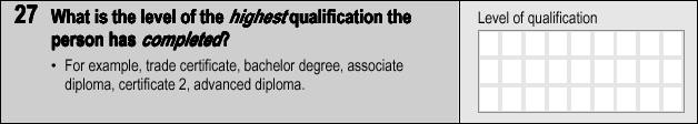 This variable describes the level of education of the highest completed non-school qualification (e.g. bachelor degree, diploma). More Detailed Description