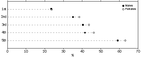 PROPORTION OF THE POPULATION WHO HAD PRIVATE HEALTH INSURANCE BY QUINTILE OF SOCIO-ECONOMIC DISADVANTAGE OF AREA(a), 1995