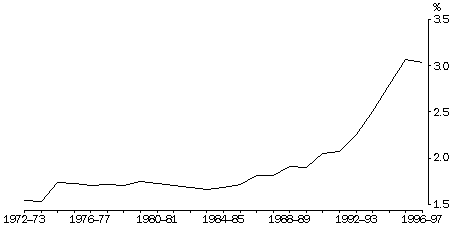 Source: Taxation Revenue, Australia, 1997-98 (cat. no. 5506.0); Tasmanian Gaming Commission, Australian Gambling Statistics 1972-73- 1996-97.
