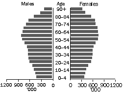 One of the most dramatic consequences of fertility decline is population ageing, which is already manifest in Australia (see Australian Social Trends 1999, Our ageing population). This is the inevitable result of sustained low fertility accompanied by increasing life expectancy. The ageing of the population will change the ratio of old to young, and the proportion of the population who are of working age. These shifts will affect many areas of social and economic activity, forcing change not only in the health and aged-care systems but in labour market structures and skills.