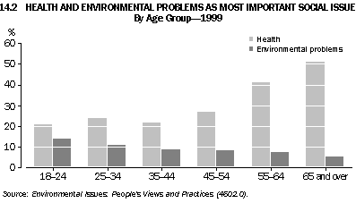Environmental problems: ranking among social issues 14.1 MOST IMPORTANT SOCIAL ISSUES, Adult Australians - 1999