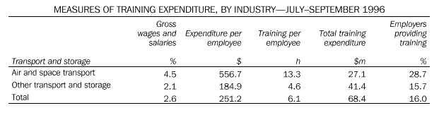 The 1996 survey collected information on training expenditure from employers who actually provided structured training to their employees in the three-month reference period 1 July to 30 September 1996. This differs from previous TESs where training costs were collected even if there was no structured training provided in the reference period.