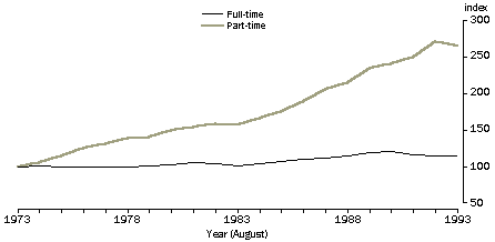 Source: Labour Force Survey Endnotes 1 See for example Lewis, H. (1990 ) Part-time Work: Trends and Issues and Gregory, R.G. (1990) Jobs and Gender: a Lego Approach to the Australian Labour Market Discussion Paper No. 244, Centre for Economic Policy Research, Australian National University.
