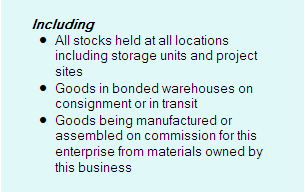 This is particularly the case where forms are sent to people or organisations who receive a large number of forms, and yours has to be readily identifiable amongst these others. It is also a matter of courtesy to let the respondent know straight away what is being asked. A form title ideally consists of only two parts: a subject (2004-05 Economic Activity) and a function (survey), e.g. Economic Activity Survey 2004-05. The title is not a sentence, and should be brief and meaningful. Section headings Evidence suggests that a section heading often prompts a respondent to skip over a section if it appears to not apply to their situation. e.g. the 'Drivers under 25' section on NRMA car insurance proposals applies to all applicants but this section was often ignored by those over 25 years of age. The amount of follow up required was dramatically reduced when the section heading was removed. Section headings can be useful where a respondent is directed to skip over sections of a form. In this situation section headings can help in the quick identification of the relevant sections of a form. Instructions There are two main types of instructions used on forms. The first type deals with what to do with the form, where to get help and so on. The second type deals with how to answer questions. Instructions are frequently ignored on forms. Instructions placed at the start of forms, if read at all, are often forgotten by the time the person has answered one or two questions. Short-term memory is used extensively when completing forms. This means that instructions need to be placed as closely as possible to the place where they are to be applied. This often means repeating the same instruction each time it is to be acted upon. This is particularly the case with instructions on how to answer questions. As mentioned earlier, the task of completing a form is not regarded as a reading activity. On receiving a form the first thing a respondent is likely to do is grab a pen and write something in the first available space. Instructions might only be referred to by them if they get stuck. Instructions as to what to do with the form are best grouped together, either at the very start or the very end of the form. The ABS has adopted a standard of putting these all on the first two pages. The front page also contains information about why the information is being sought, the authority for the collection of the data, and names and phone numbers of where to get help. Instructions at the end of a form often include a checklist of items from the form and details of what to do next. Short sentences Short sentences are easier to understand than long ones. Although it is unrealistic to specify a maximum length, each sentence should convey a single item of information. A poor sentence combining many items of information is shown in the following example (see Diagram 7.1). Diagram 7.1 Breaking the instruction into sentences containing one idea each and improving the layout gives the following presentation (see Diagram 7.2). 3 Report all stocks owned by the business named on page 1 Diagram 7.2 Order of clauses Sentences should have clauses in chronological order to aid comprehension. In the example below (see Diagram 7.3), the first action is to read the instructions, but this doesn't become clear until the end of the sentence. Diagram 7.3 A better method is shown below (see Diagram 7.4). Diagram 7.4 Respondent / activity relationship Keep clauses naming the respondent close to the clause which says what the respondent has to do. The example below (see Diagram 7.5) inserts an explanatory phrase before the action is complete. Diagram 7.5 The following example (see Diagram 7.6) is a clearer way of giving the same instruction. Diagram 7.6 Positive versus negative questions Research has shown that when people are asked negative questions they are much slower in responding. The slower response is caused by people having to think about the answers rather than giving them automatically. Although we might consider that causing people to think about questions is good, with many questions people think wrongly and give the wrong answers. Negative questions cause additional effort for our respondents, for no good reason. The following is an example of negative instruction (see Diagram 7.7). Diagram 7.7 The positive alternative is shown below (see Diagram 7.8) where the instruction 'tick one only' is positive and unambiguous. Diagram 7.8 Active versus passive voice Most people find sentences in the active voice easier to understand than the passive voice. Passive voice is when the subject is acted upon, for example: "This form is to be completed by the operator whether operating for the full year or only part of the year." Active voice is when the subject performs the action: "The operator is to complete the form, whether operating for the full year or only part of the year." Making nouns out of verbs This is a common practice with many writers. In the following example the verb 'certify' is made into a noun: "Certification for all collection forms must be given by an Assistant Statistician or Deputy Australian Statistician." The preferred alternative is much clearer, uses fewer words and is more direct: "An Assistant Statistician or Deputy Australian Statistician must certify all collection forms." Conversational style Form designers frequently try to save space on a form by omitting phrases that they consider to be unnecessary but which would have helped clarify the meaning. The following example shows a sentence which has been abbreviated by leaving out some of the words which would be used in spoken English: "Comment here on unusual circumstances (drought, floods, fires, hailstorms etc.)." The conversational style of the next example is more easily understood by people with an average reading ability:
