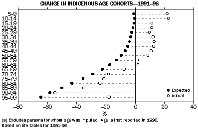 Births and deaths of Indigenous people in the inter-censal period have been estimated by the ABS and published in Experimental Projections of the Aboriginal and Torres Strait Islander Population, June 1991-June 2001 (ABS Cat. no 3231.0). Just over 40% of the 1991-96 increase in Indigenous census counts can be attributed to natural increase.