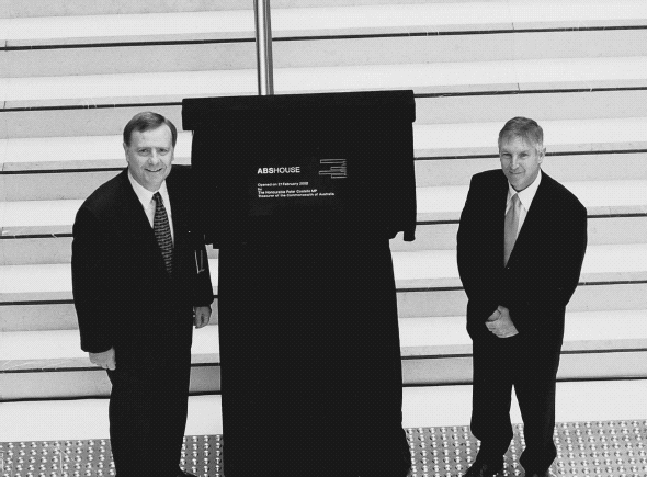 Early 2002 saw a major milestone in the history of the ABS with Central Office staff moving into purpose built accommodation. ABS House provides a modern, professional and well-equipped office environment in keeping with our standing as a leading national statistical agency. The design is compact and concentrates access through two main entries. In addition to ensuring appropriate security of the building and workplace, these arrangements have provided greater opportunity for informal staff interaction. The Treasurer, the Hon. Peter Costello, MP, with the Australian Statistician, Dennis Trewin, officially opens ABS House. Australian Statistician Dennis Trewin, with two former Australian Statisticians, Ian Castles (left) and Bill McLennan (right), at the opening of ABS House. The opening of ABS House on 21 February 2002 by the Treasurer, the Hon. Peter Costello, MP, was a particular highlight for the ABS. The Treasurer emphasised the importance of the work done by the ABS for Australia. In opening the building the Treasurer observed that the move to ABS House was achieved within budget and ahead of schedule and would do much to strengthen the Bureau’s ability to undertake its work. ABS House has already won two significant awards - the first was the 2002 ACT Master Builders Association Project of the Year Award (builders - Bovis Lend Lease Pty Ltd), and the second was the 2002 Royal Australian Institute of Architects, ACT Chapter, Canberra Medallion (architects - Woods Bagot Pty Ltd). ABS House is now eligible for the national judging of both awards.