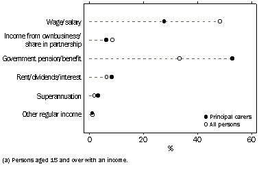 • In 1993, more than half of all principal carers with an income (52%) had a personal weekly income of $200 or less.