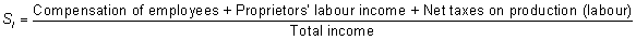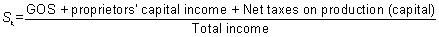 • Total income = GOS + Proprietors' capital income + Net taxes on production (capital) + Compensation of employees + Proprietors' labour income + Net taxes on production (labour).