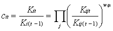 27.58 The income tax parameter, , allows for the variation of income tax allowances according to different industries, asset types, and variations in allowances over time. Changes in corporate profit taxes over time are also allowed for. Corporate taxes aside, these provisions increase the after-tax returns on investment and lower the rental price of capital. For each industry, i, and asset type, j, is expressed as: