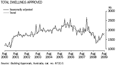 - In recent months, the number of residential building approvals has been very volatile in seasonally adjusted terms. Following a significant rise in June 2009 (17%), then a fall in July (-5%), the number of residential approvals rose to 1,804 (1.3%) in the month of August.