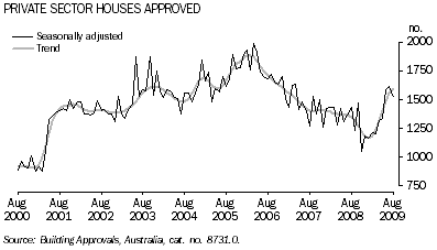 - The increase was driven by approvals for single houses, which accounted for more than 90% of residential building approvals in August 2009.