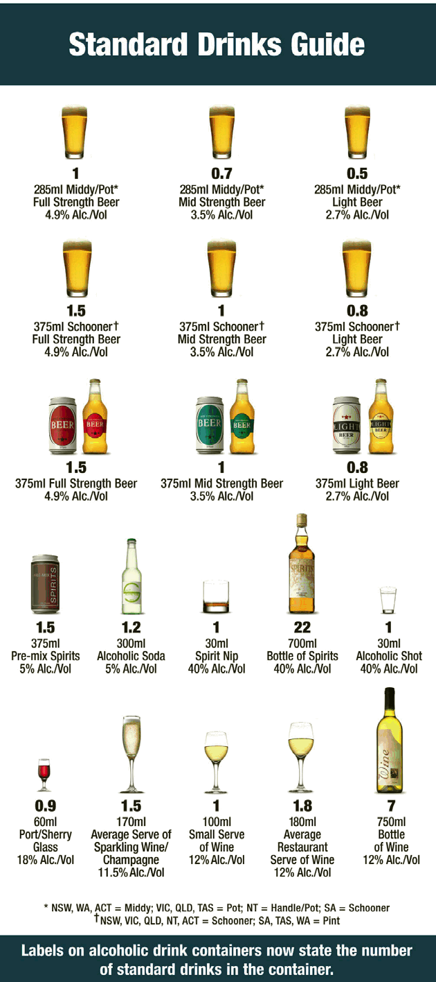Diagram 1.5: NSW Office of Drug and Alcohol Policy (2006) Standard Drinks Guide, viewed on 18/2/09, <http://www.alcoholinfo.nsw.gov.au/__data/page/1385/FactSheet_AlcoholandConsumption.pdf>