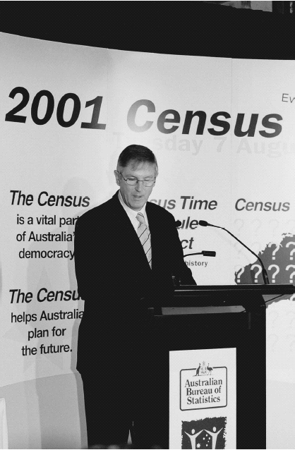 The five-yearly Census of Population and Housing, conducted on 7 August 2001, was the most successful Census undertaken by the ABS with first results released in June 2002 - under budget and one month ahead of schedule, the earliest Census results ever. Conducting the Census was a major logistical achievement with some 40,000 temporary staff employed and approximately 7.8 million households visited. Australian Statistician Dennis Trewin at the launch of the first results, released in June 2002, of the five-yearly 2001 Census of Population and Housing. This Census was unique in a number of ways. The Centenary of Federation Time Capsule Project provided Australians with the option of having copies of their name-identified 2001 Census records stored by the National Archives of Australia for public release after 99 years. Over 50 per cent of Australians agreed to have their Census forms retained until the year 2100. The Census processing systems were streamlined using leading edge technology and for the first time intelligent character recognition was used to capture information from Census forms. A major aspect of the 2001 Census output strategy is the large amount of information available free of charge on the ABS web site. All Australians can access information about their statistical local area for free. Since launching the results on 17 June 2002, web access to Census data has been as high as 568,000 hits on the day of release, compared with around 71,000 hits normally. Additionally, as a result of ABS’s membership of the Interdepartmental Committee on Commonwealth Spatial Data Access and Pricing Policy, the ABS will provide low cost Australian Standard Geographical Classification boundaries on CD-ROM. Launching the 2001 Census results, Mr Hugh Mackay, well known social commentator and analyst, praised the ABS as providing one of the world’s leading statistical services. Mr Mackay’s major observations related to Australia’s ageing population and shrinking household size. One hundred years ago 4 per cent of the population was over 65 years of age, compared to 13 per cent now. While in the past 30 years the average size of Australian households has fallen from 3.3 persons to 2.6 persons. In introducing Mr Mackay, the Australian Statistician acknowledged with gratitude the special effort of the Australian people to the success of the Census. The Treasurer, the Hon. Peter Costello, MP, speaking in Parliament, also thanked the people of Australia for taking part in the Census, and observed that the ABS leads the world in relation to the collection of statistics. Mr Costello stated that the Census will provide the Government with the basis for the development of policy and long-term planning for the future of Australia.