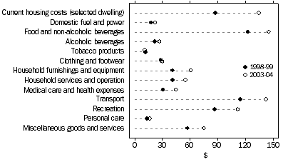 PERCENTAGE CHANGE IN AVERAGE WEEKLY HOUSEHOLD EXPENDITURE ON GOODS AND SERVICES - 1998-99 to 2003-04