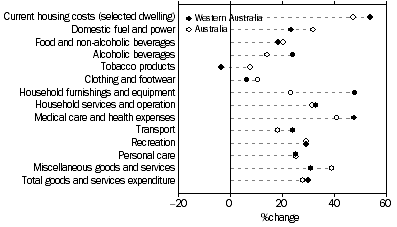 In contrast, Western Australian households had slower growth in their spending on domestic fuel and power (23% compared with 32%). They also had a small reduction in their expenditure on tobacco products (3.6%) compared with a 7.5% increase nationally.