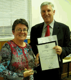 Dennis Trewin, Australian Statistician presenting LEP Excellence Award to Leanne Vincent of TAFE Tasmania