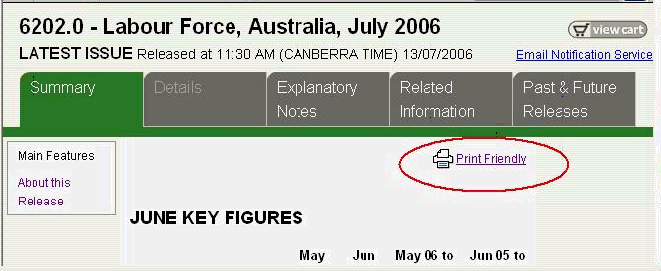 This new feature will enhance printing functionality from all Statistical Products. By clicking the 'Print Friendly' link at the top right of the content on Summary and Explanatory Notes tabs, users will be presented with a display of the current content without the web navigation links.