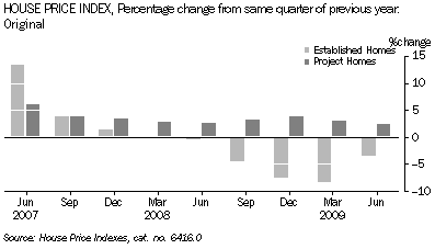 - After five consecutive quarters of decrease, the established homes price index for Western Australia rebounded in June 2009, showing a quarterly increase of 2.7%. The weighted average index for the eight Australian capital cities also turned around, with a 1.5% increase.
