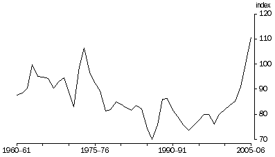 Net Exports Contribution to growth, Chain volume measures View underlying data tables as an Lotus 123 File: (Help: Lotus 123) In addition to the trade in goods and services, the flow of funds between Australia and overseas is an important component of the relationship with the rest of the world. Australia has generally been a net borrower of funds from overseas. In the national accounts, this situation is reflected by a negative value for net lending to non-residents. The only exception to this pattern was in 1972-73. The ratio of net borrowing from overseas to GDP in 2005-06 was 5.3%, down from 6.1% in 2004-05. Net Lending to Overseas, relative to GDP View underlying data tables as an Lotus 123 File: (Help: Lotus 123) Document Selection These documents will be presented in a new window.