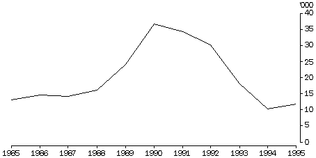 There was a rapid increase in the number of loans granted between 1988 and 1990 when mortgage interest rates peaked. Since then, however, the use of home purchase assistance has decreased. This is related to a decline in the availability of assistance due to problems with home purchase assistance arrangements in some States. In New South Wales, for example, all new lending under the Homefund program was suspended in April 1993, and no new home purchase assistance products have been introduced since then1. The decline is also related to a reduction in commercial mortgage interest rates (see Housing - national summary table).