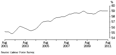 | Persons | % | Trend | Aug 11 | 62.2 | (c)-0.1 | (c) 0.0 |