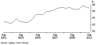 | Persons aged 15 and over | % | Original | Aug 11 | 65.0 | (c)-0.6 | (c) 0.1 |