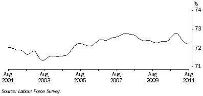 | Persons | % | Trend | Aug 11 | 62.2 | (c)-0.1 | (c) 0.0 |