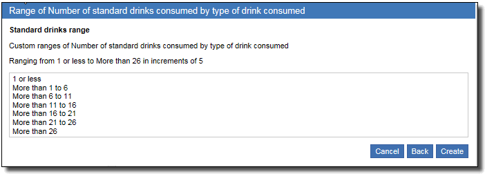4. The ranges to be included are displayed. Edit by clicking Back or continue by clicking Create.
