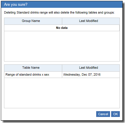 Clicking OK deletes these groups and tables as well as the ranges variable.