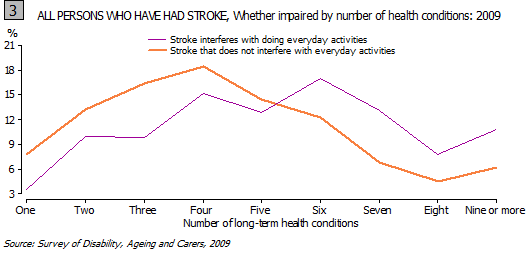 Those people who were impaired by their stroke were likely to report more long-term health conditions than those who had a stroke but were not impaired as a consequence.
