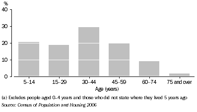 People who arrived in, departed or did not move from Waratah/Wynyard (M) - Pt B Following is a discussion of the characteristics of three populations relating to Waratah/Wynyard (M) - Pt B: arrivals to the SLA within the five years to the 2006 Census; departures from the SLA within the same time period; and those who did not move SLA. At the 2006 Census 32.4% of usual residents of Waratah/Wynyard (M) - Pt B (excluding people aged 0-4 years and those who did not state where they lived five years ago) had arrived in the SLA within the last five years. Most of these arrivals were from interstate. Overseas arrivals (18) made up only 2.5% of all arrivals in Waratah/Wynyard (M) - Pt B. Most departures from Waratah/Wynyard (M) - Pt B (80.4% or 600 departures) departed to the remainder of Tasmania (this analysis excludes departures overseas, which are unable to be counted using Census data). Age While the most common age group for all arrivals was 30-44 years (29.5% of all arrivals - see Graph 7.1), arrivals from interstate were more likely to be aged 45-59 years (27.6% of interstate arrivals). People in these age groups may be moving to this SLA for a lifestyle change or to raise a family and some may be returning after leaving for work purposes. A high proportion of people who had not moved SLA were also aged 45-59 years (28.8%). The most common age group for departures was 15-29 years, making up 32.0% of all departures (see Graph 7.2). It is possible that departures in this age group are moving for education or employment reasons, although there are a number of TAFE Tasmania campuses within daily commuting distance and a University of Tasmania campus at Burnie. The educational attendance of the three population groups of this study were relatively low compared to the rate for Australia, but departures (at 10.4%) had twice the proportion attending post secondary school education, when compared with arrivals and people who had not moved SLA (4.9% and 4.6% respectively). Employment Generally departures from Waratah/Wynyard (M) - Pt B did not work in the Agriculture, forestry and fishing industry, which was the primary industry of employment for residents in this SLA. Specifically, while Agriculture, forestry and fishing was the top industry of employment for employed arrivals (14.3%) and employed people who had not moved SLA (22.0%), only 5.8% of employed departures worked in Agriculture, forestry and fishing. The unemployment rate of residents living in Waratah/Wynyard (M) - Pt B at the 2006 Census was 8.9%, compared with 6.6% for Tasmania and 5.2% for Australia. Arrivals to this SLA were more likely to be unemployed (13.0% of the labour force) than departures (8.5%) or people who had not moved SLA (6.9%). The labour force participation rates for each of these groups were similar (61.7%, 63.8% and 62.1% respectively) although they were all slightly lower than Australia (64.6%). As noted earlier, the relatively high unemployment rate of Waratah/Wynyard (M) - Pt B was influenced by the unemployment rate of arrivals. A feature of the data are that within the arrivals population group, the unemployment rate varied depending on their different points of origin. Arrivals from within the state had an unemployment rate of 10.6%, but a high labour force participation rate (68.9%), whereas interstate arrivals had a higher unemployment rate (15.0%) and a lower labour force participation rate (52.7%). The low participation rate for interstate arrivals may be due to people moving to the area to retire or for a change of lifestyle. The unemployment and labour force participation rates for departures also varied according to the location to which they departed. Departures who moved interstate had the lowest unemployment rate of all arrivals and departures (4.1% of the labour force) and the second highest labour force participation rate (65.5%). Education and income Broadly similar proportions of arrivals, departures and people who had not moved had non-school qualifications. Arrivals had the highest proportion of residents aged 15 years and over with non-school qualifications (44.4% or 240), followed by departures (37.8% or 216) and people who had not moved SLA (36.2% or 422). There was also very little difference in income across the three population groups of this study. A higher proportion of those who had not moved SLA who were aged 15 years and over earned $1,000 or more per week than arrivals and departures in the same age group (13.5%, 10.8% and 11.0% respectively). These data may indicate that in general, arrivals are unlikely to be moving to Waratah/Wynyard (M) - Pt B for highly skilled jobs that could not be filled locally. Please note: All data presented in this publication relate to person or dwelling characteristics at the time of the 2006 Census. As arrivals and departures may have moved at any time in the five years to the 2006 Census their characteristics could have been different at the time of their migration. The data presented also only captures a person's place of usual residence at the 2006 Census and five years prior to the Census (where they have answered that question). People could have moved residence numerous times between these time periods. Arrivals estimates exclude people who did not state where they lived five years ago, and those who were under the age of 5 at the time of the 2006 Census. In addition to those exclusions, estimates of departures also exclude overseas departures (as these people were not enumerated in the Census). To be consistent with the conceptual basis of the arrivals and departures estimates, the adjusted Census count used in calculating population turnover also excludes 0-4 year olds and people who did not state where they lived five years ago. Document Selection These documents will be presented in a new window.