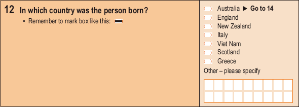 The response categories for this question are designed to reflect those countries which were reported most often in the previous Census.