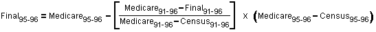 Applying the proportions from Step 2 to the gap between the original 1995-96 Medicare-based estimates and the 1995-96 census migration estimates.