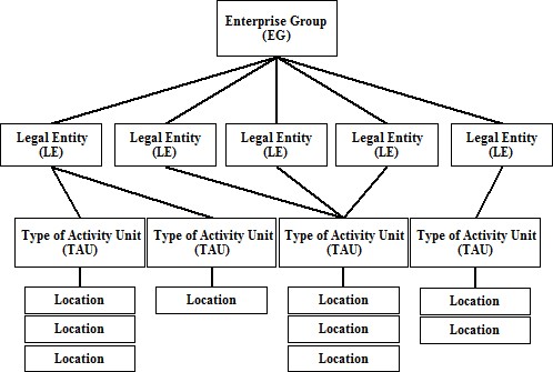 25.4 The ABSBR is a list of businesses and organisations operating in Australia and is based on the ABR. Organisations are included on the ABR when they register for an Australian Business Number (ABN). The ABSBR is used to create frames for the various business surveys run by the ABS and consists of two populations; the profiled population, and the non-profiled population. Organisations which are considered sufficiently complex and significant, are included in the profiled population. They are structured according to the ABS Economic Units Model (ABSEUM) using information provided by the organisations. Organisations in the non-profiled population have less complex structures and are based largely on ABR information. STATISTICAL UNITS 25.5 Statistical units are used to represent one member of the population being surveyed. Statistical units on the ABSBR are based on the ABS Economics Units Model (ABSEUM). The ABSEUM has four statistical unit levels that are commonly applied in collections, these are Enterprise Group, the Legal Entities that belong to that group, the Type of Activity Units that these legal entities carry out and the location where these economic activities take place.