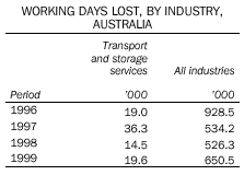 Data are available for disputes in the transport and storage industries.